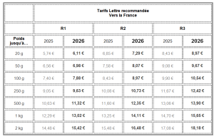 - Tarifs postaux pour l’étranger 2026