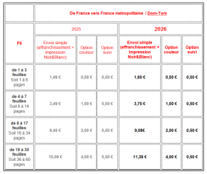 - Tarifs Courrier 2026