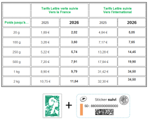- Tarifs Lettre suivie 2026
