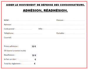 Inutile d’avoir des problèmes pour nous soutenir, en effet plus nous serons, plus grande sera notre influence pour la défense des consommateurs. C’est pourquoi, tous les ans, nous vous demanderons de renouveler votre adhésion et éventuellement de nous faire un don.